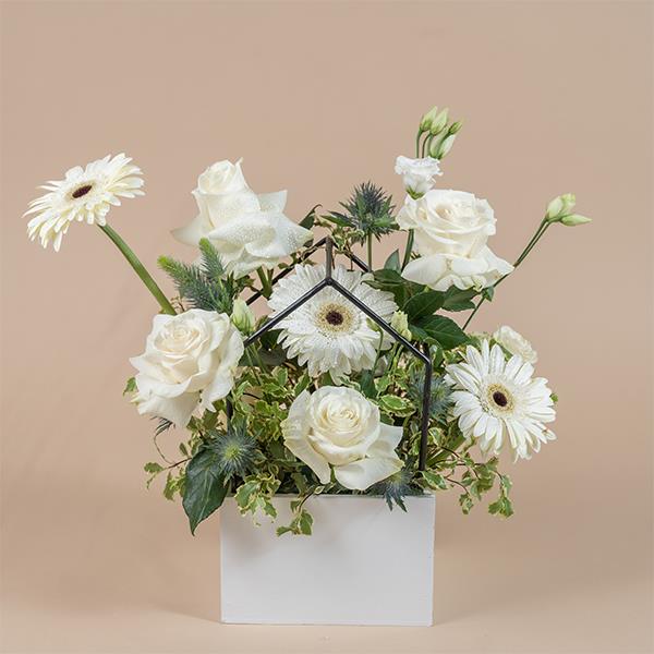 The combination of Gerbera, Lisianthus and Roses, simply arrange to show our sincerity.